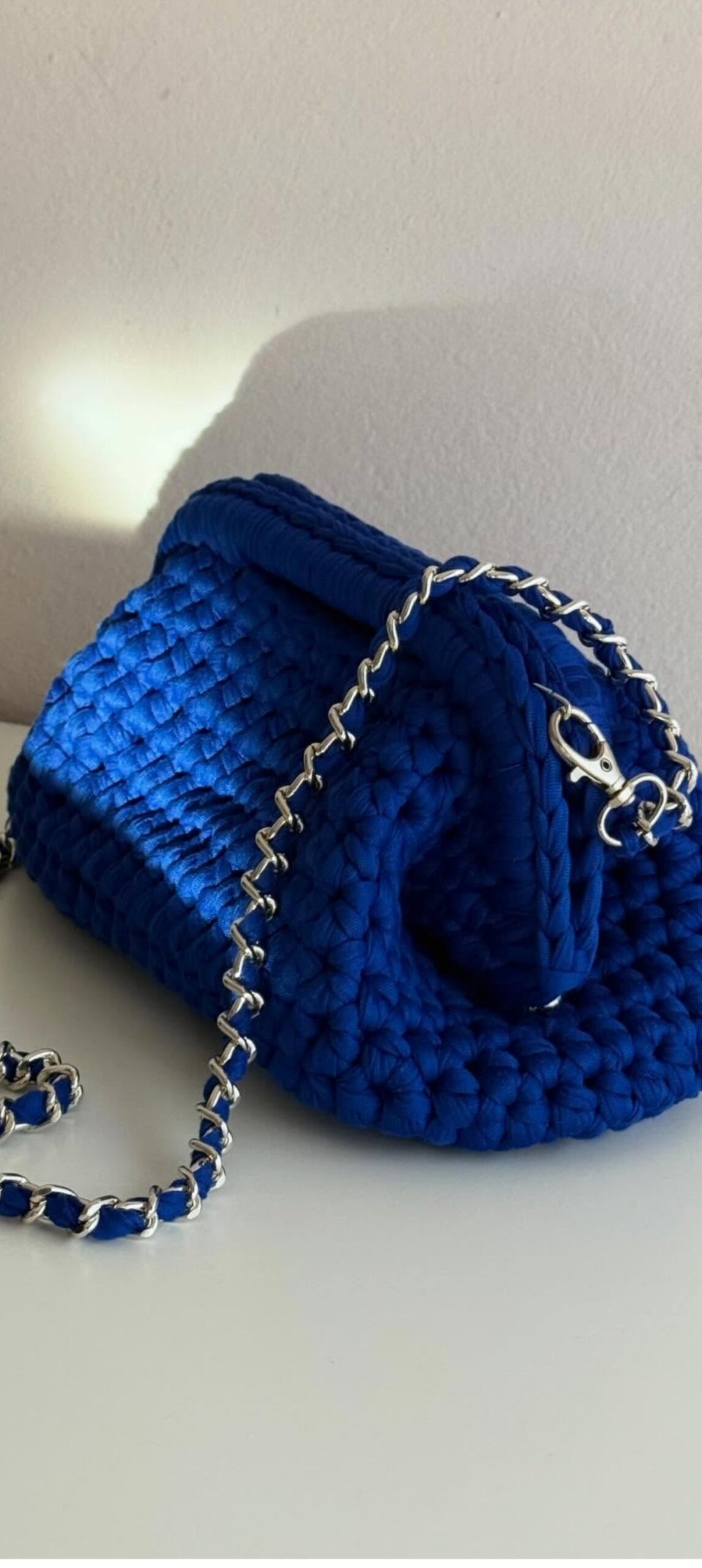 *Handcrafted crochet sling bag in a rich royal blue shade